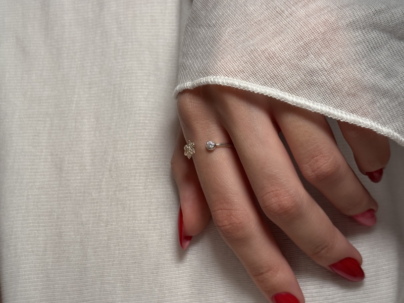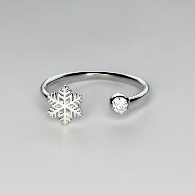 деликатное кольцо "снежинка" открытой формы из коллекции "Зима"