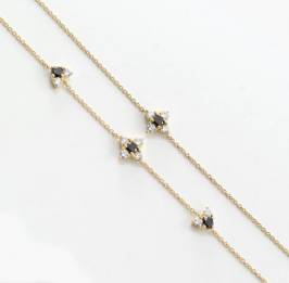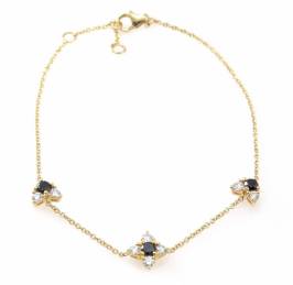 Браслет «Клевер» трио с бриллиантами Вставка: черный бриллиант 2,5 мм 3 шт Белые бриллианты 8 шт по 1,5 мм (3/5 цвет/чистота) Цепь: якорь На фото: модель в желтом золоте