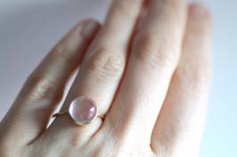 Деликатное колечко из коллекции "Винтаж" с розовым кварцем Камень: 8 мм натуральный розовый кварц огранки кабошон Металл: на выбор (на фото в лимонном золоте)