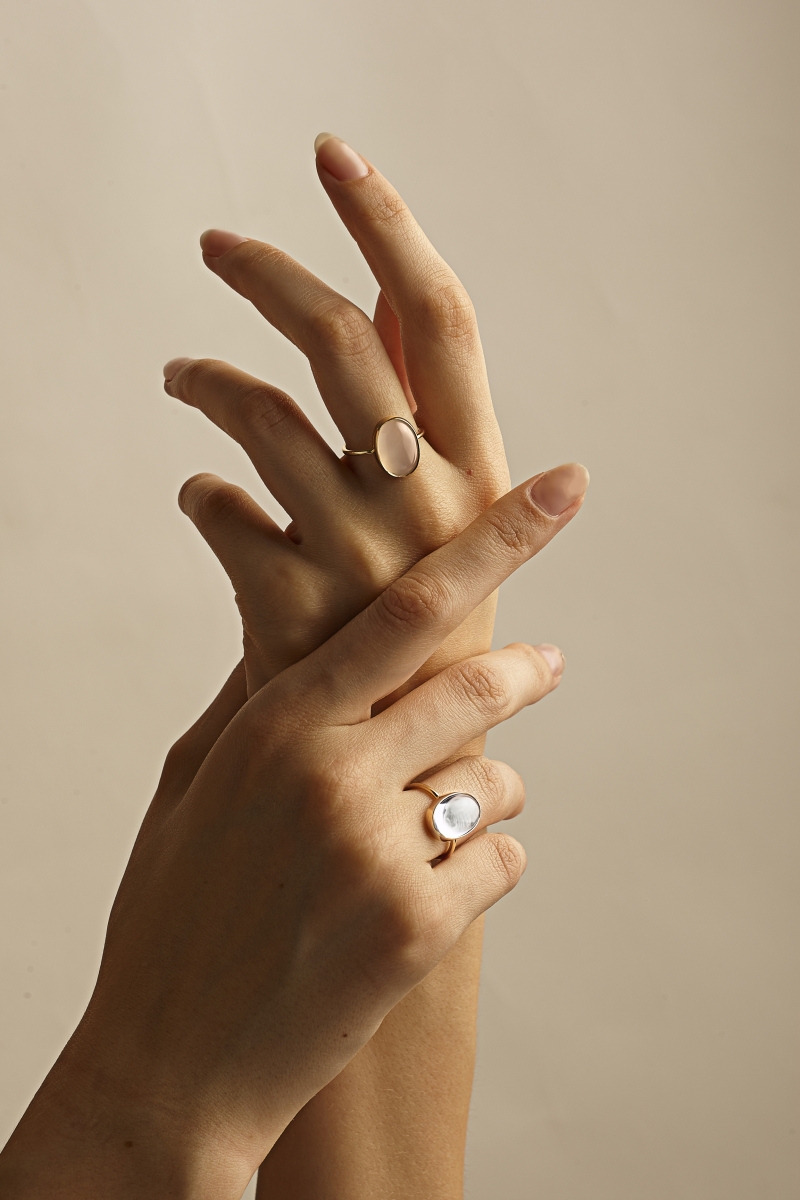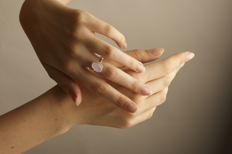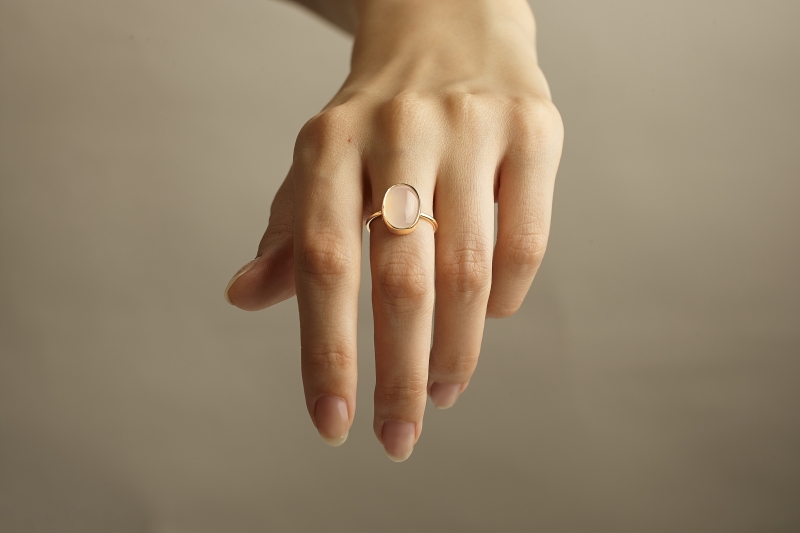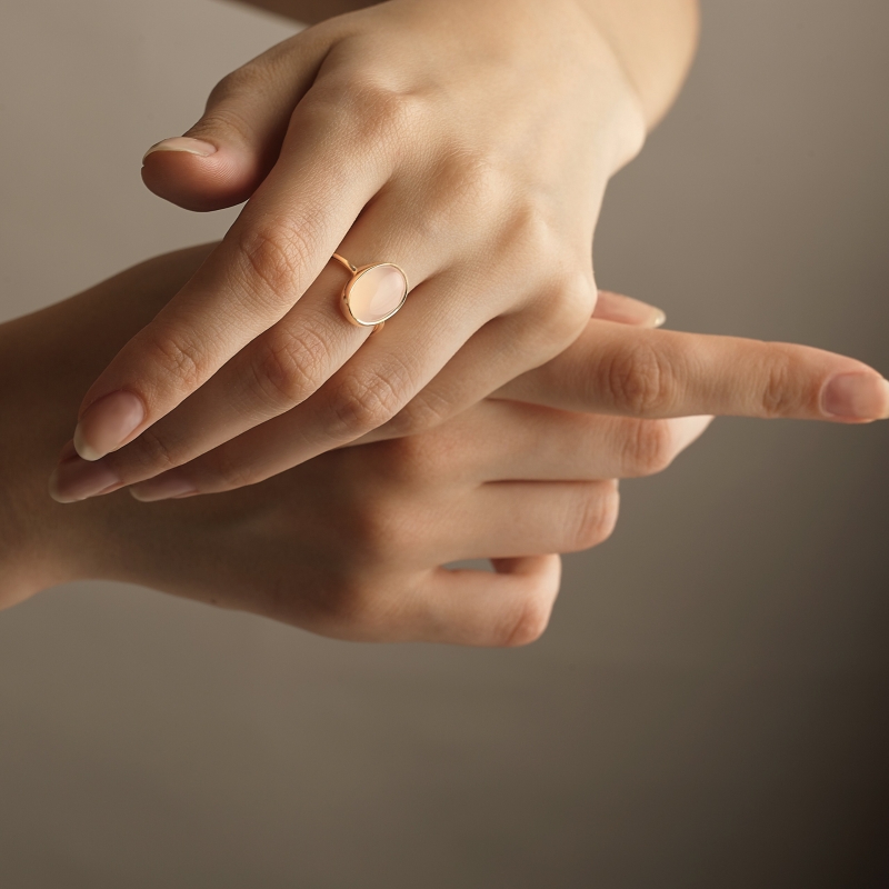 Кольцо в глухой закрепке из коллекции "Винтаж" с розовым кварцем Камень: 8/12 мм натуральный розовый кварц огранки кабошон Металл: на выбор