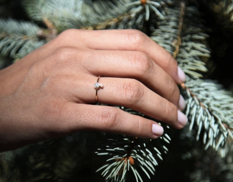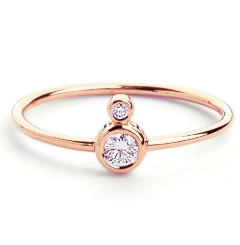 Кольцо с двумя бриллиантами Камень: 1) бриллиант 0,1 карат (3 мм). 3/5: цвет/чистота 2) бриллиант 1 мм (3/5) Ширина шинки: 1 мм На фото: модель в розовом золоте