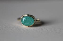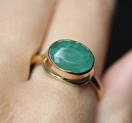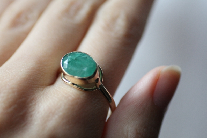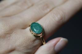 Кольцо в глухой закрепке из коллекции "Винтаж" с натуральным изумрудом Вес: 5,5 гр Камень: натуральный изумруд овал 8/12 мм Металл: на выбор На фото: модель в лимонном золоте.
