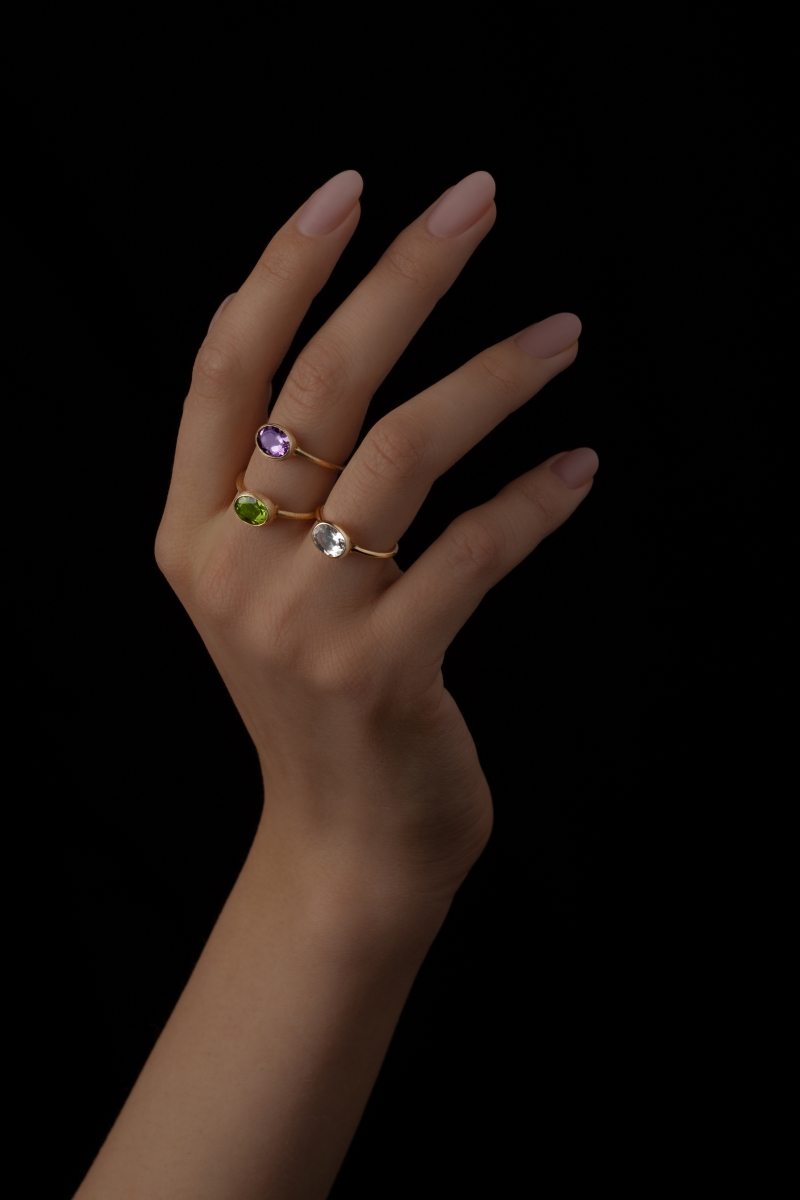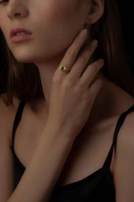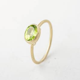 Кольцо "Антик" с хризолитом Глухая закрепка и матовый финиш. Вставка: натуральный хризолит овальной огранки Размер камня: 5/8мм