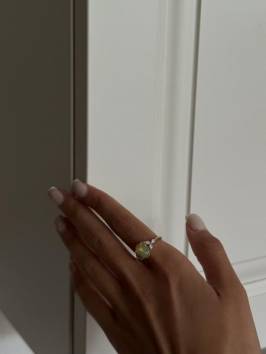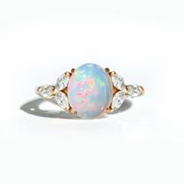 Кольцо с эфиопским опалом и бриллиантами Вставка: природный эфиопский опал 4 карата Бриллианты огранки маркиз (3/5 цвет/чистота) На фото: желтое золото
