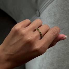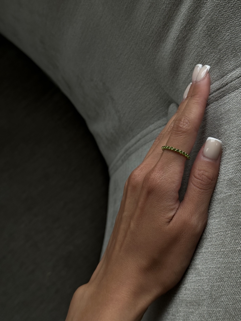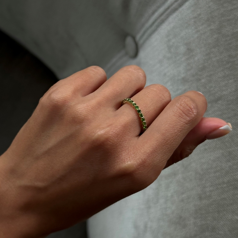 Кольцо "Дорожка" с хромдиопсидом Камни: натуральный хромдиопсид по 2 мм На фото модель в желтом золоте