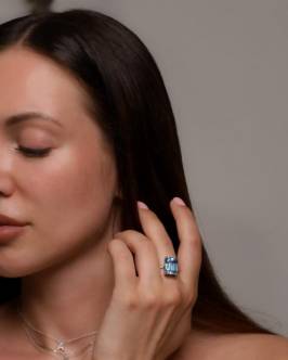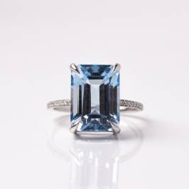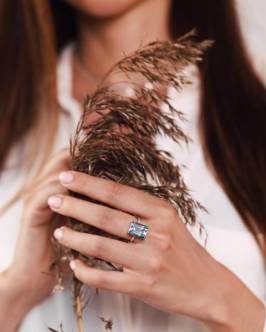 Кольцо с цитрином и бриллиантом Камень: натуральный топаз огранки багет 8/12 мм Бриллианты: 20 штук по 1 мм (3/5 цвет/чистота) На фото модель в белом золоте