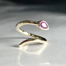 Кольцо открытой формы в виде змеи "Мудрость", с рубином Камень: натуральный рубин формы груша 3*5 мм Металл: на выбор