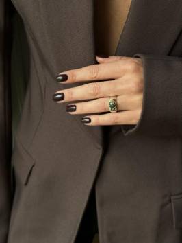 Кольцо "Винтаж" с чёрным опалом Вставка: чёрный лабораторный опал круг 8 мм на фото: модель в жёлтом золоте Данная модель есть с голубым опалом