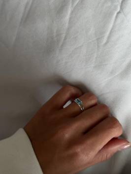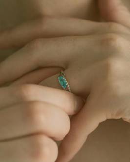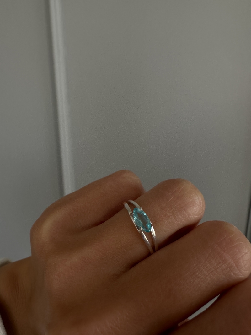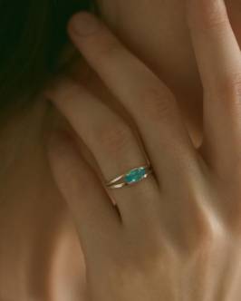 Кольцо на двойной шинке с апатитом параиба Камень: натуральный апатит в оттенке параиба Форма камня: маркиз, 8/4 мм Металл: на выбор