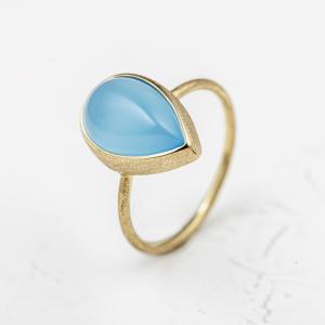 Кольцо "Капля" с аква халцедоном