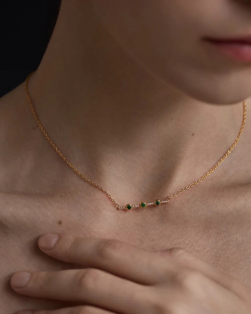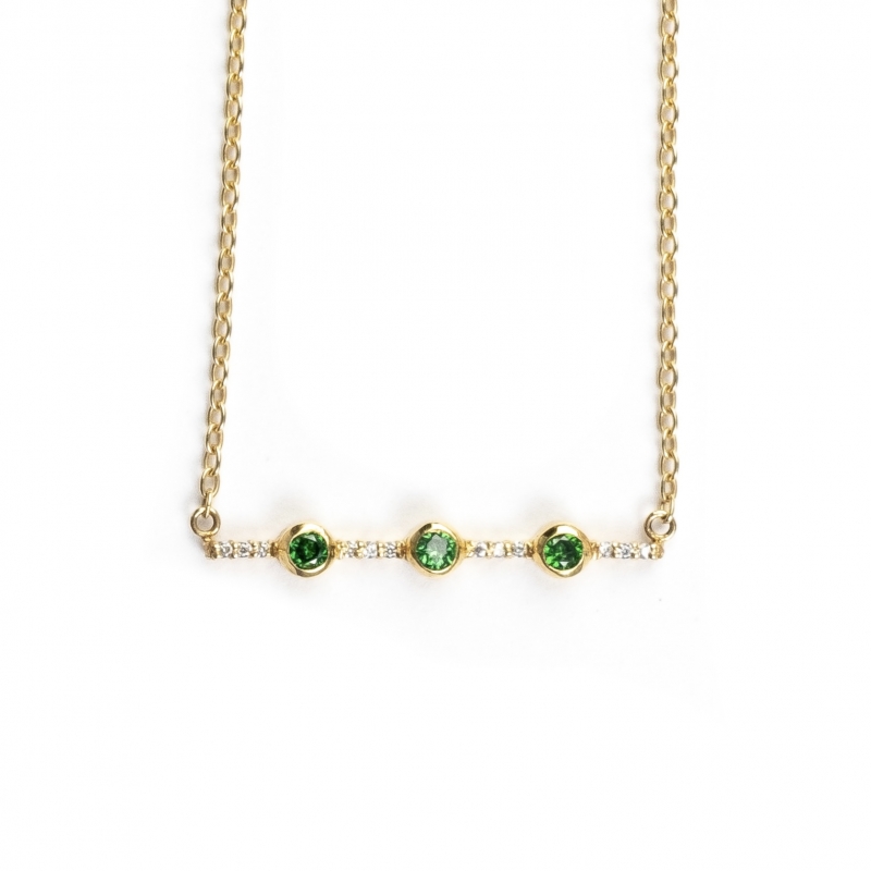 Колье с бриллиантами и изумрудами Камни : бриллианты 1мм, изумруды 2,5мм длина "дорожки" из камней -3см Металл на выбор
