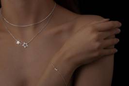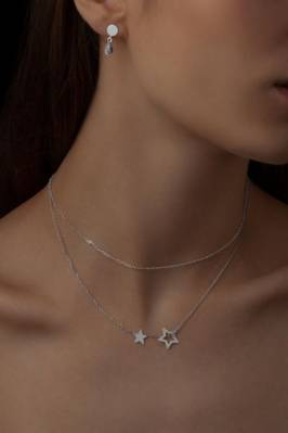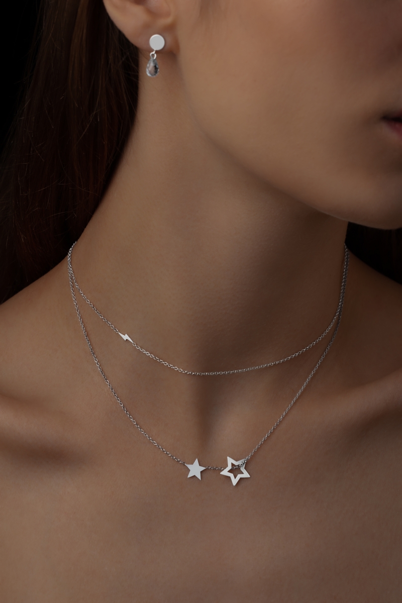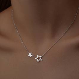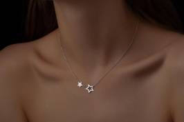 Подвеска "Две звезды" Размер малой звезды: 9мм Размер большой звезды: 14мм Длина цепочки: 38/40см