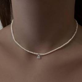 Чокер с натуральным жемчугом и буквой Натуральный пресноводный жемчуг белого цвета Размер жемчуга: 2.5-3мм Размер буквы: 8x9мм Металл: на выбор