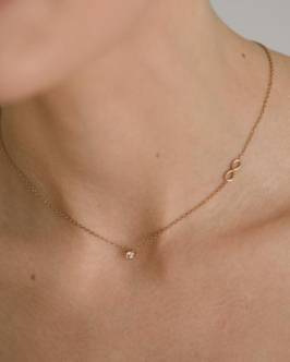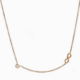Подвеска Бесконечность и бриллиант Размер символа: 9/10 мм Бриллиант: 2.85 мм (0.1 карат, 3/5 цвет/чистота) Примечание: в серебре и позолоте данная подвеска идет с фианитом 3 мм, в золоте - с бриллиантом