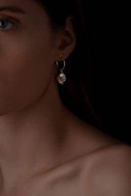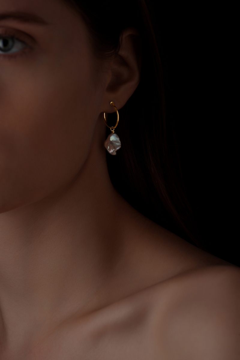 Серьги "Круги" с белым жемчугом барокко из нашей коллекции "Сlassic"