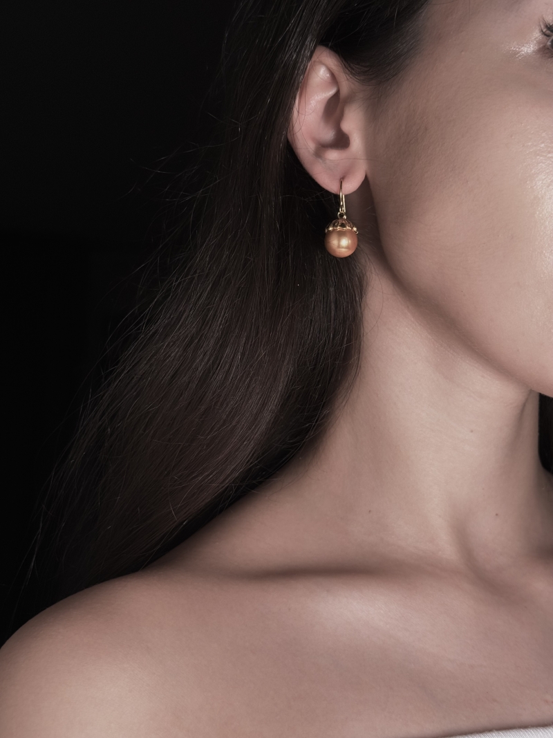Серьги-петли с золотым жемчугом из нашей коллекции "Сlassic"