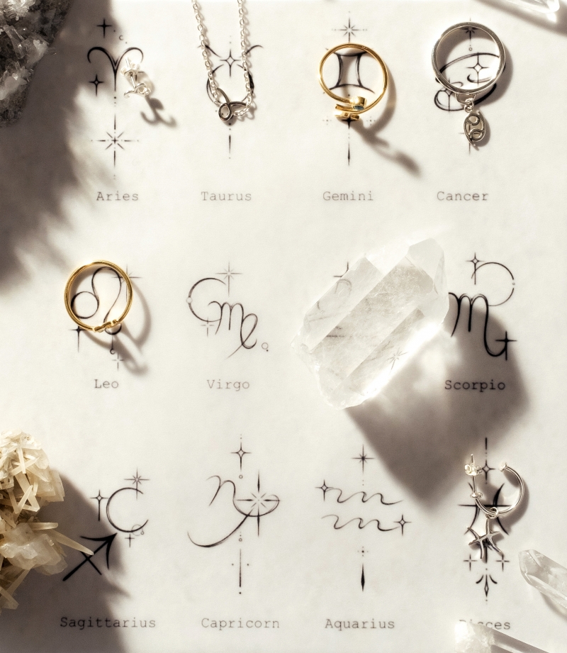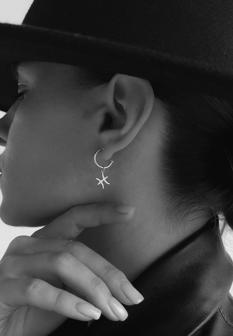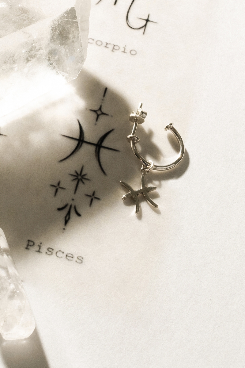 серьги-круги из различных металлов "Знак зодиака" размер символа: 7/8 мм замок: заглушка/ винтовой в золоте