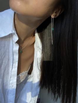 Серьги из нашей коллекции "Капли" с натуральным изумрудным кварцем Размер камня: 7/9 мм Форма: капля Огранка: бриолет Длина цепочки: 12 см