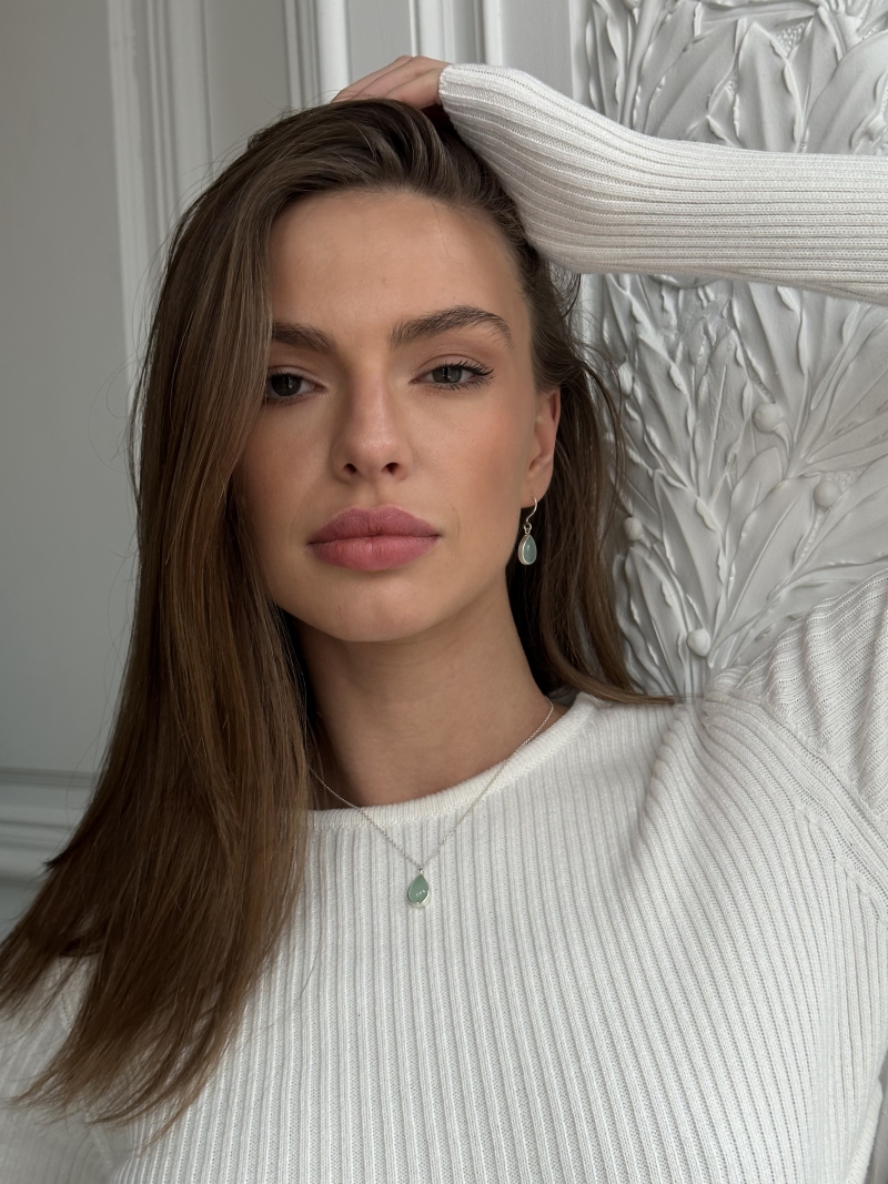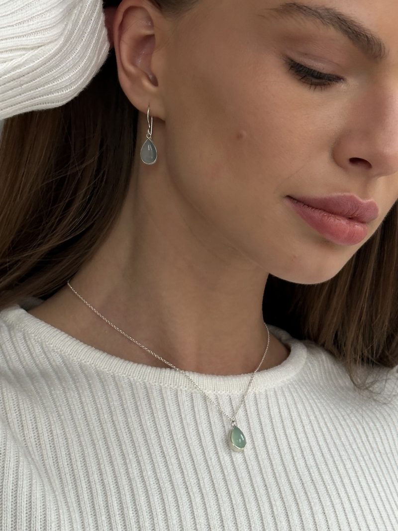Серьги "Капли" с аква халцедоном Коллекция "Капли" Вставка: натуральный халцедон Размер 8/12 мм На фото модель в розовом золоте